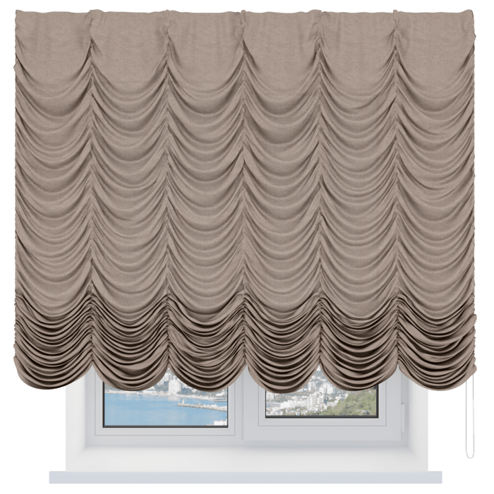 Французская штора лён кашемир коричневый, карниз верёвочный
