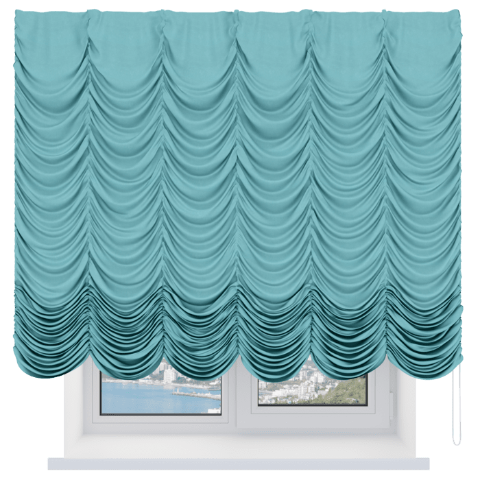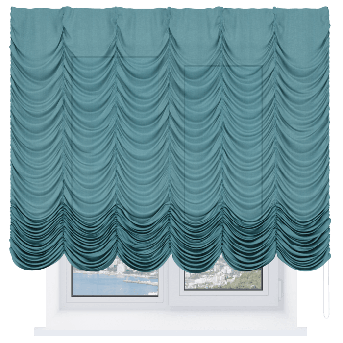 Французская штора лён бирюза, карниз верёвочный