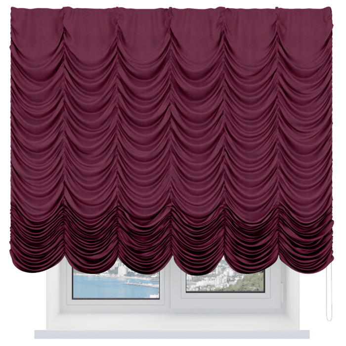 Французская штора вельвет бордовый, карниз верёвочный