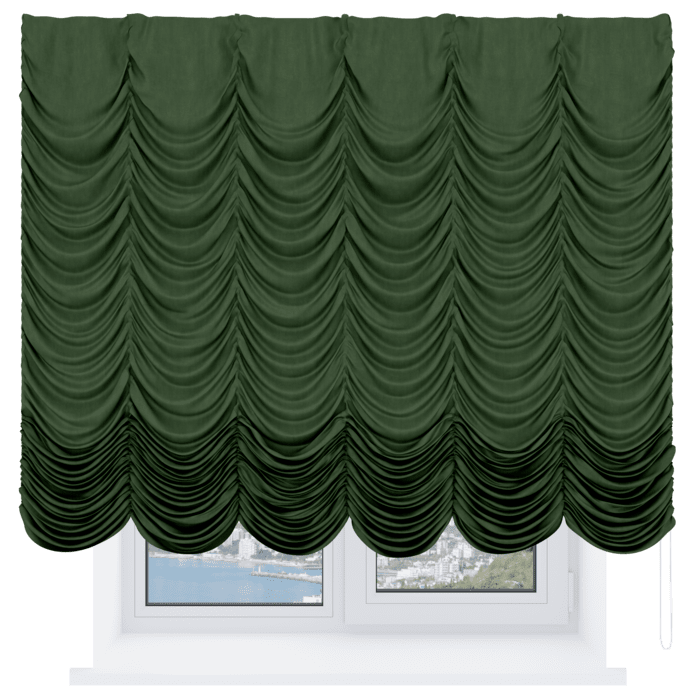Французская штора вельвет тёмно-салатовый, карниз верёвочный