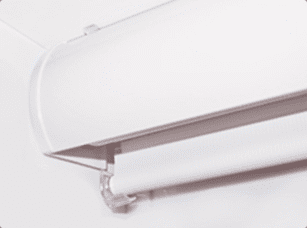В закрытой системе вал с намотанной на него тканью полностью скрывается в специальном коробе, по краям полотно удерживается направляющими планками. Такой вариант имеет более эстетичный и завершенный вид, а короб обеспечивает защиту вала с полотном от пыли и механических повреждений.